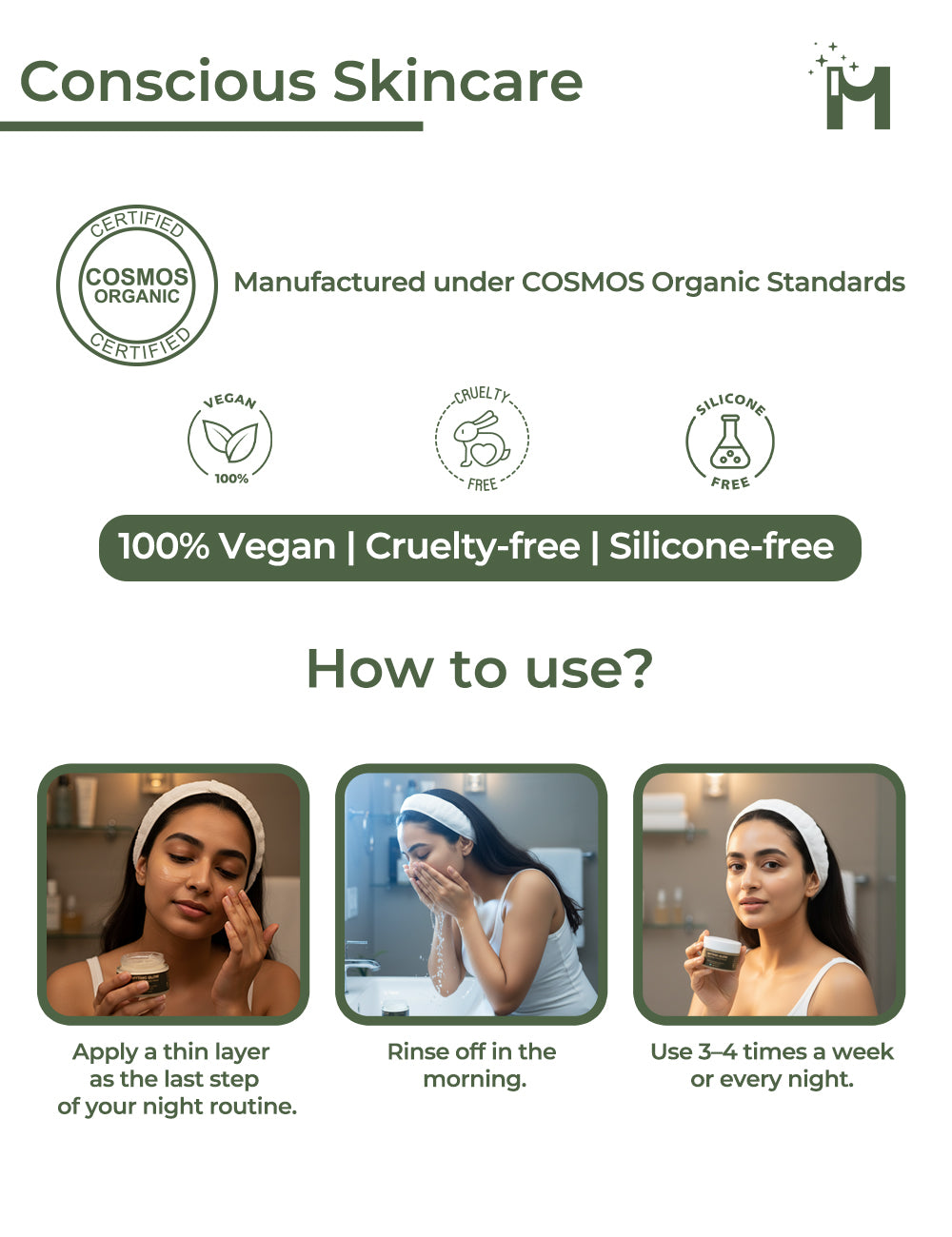 Made under COSMOS Organic guidelines, it’s your nightly reset ritual for smooth, glowing, even-toned skin by morning.